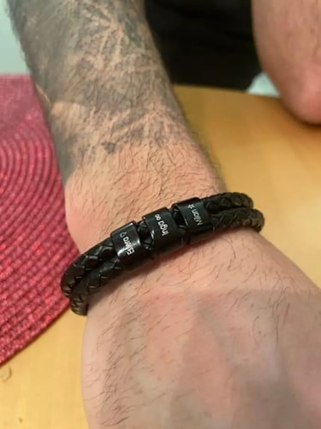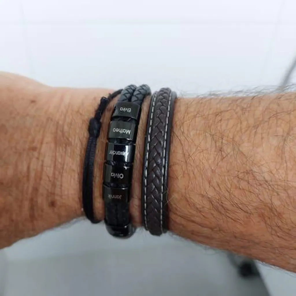 Bracciale in pelle con anelli incisi