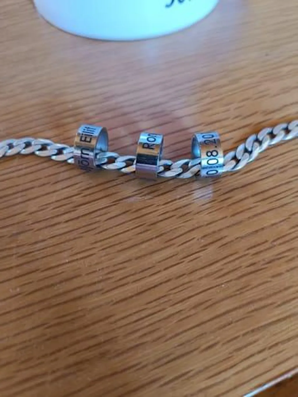 Mit unseren gravierten Ringen kannst du das Armband ganz einfach erweitern z. B. nach der Geburt eines weiteren Kindes oder zu einem besonderen Anlass. So wird aus einem schönen Geschenk ein bleibender Begleiter, der mit eurer Familie wächst.