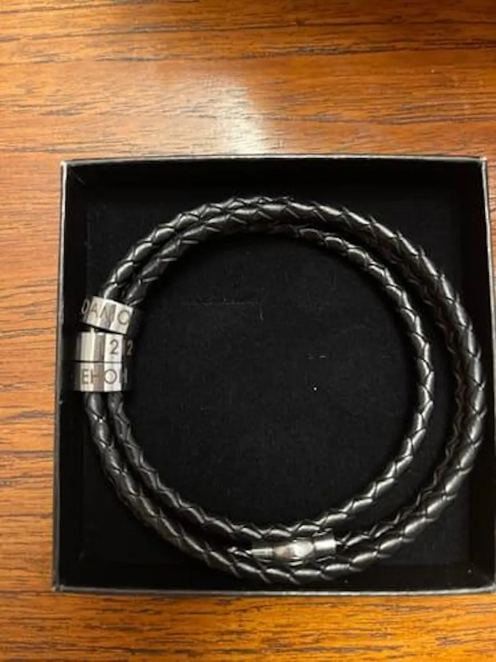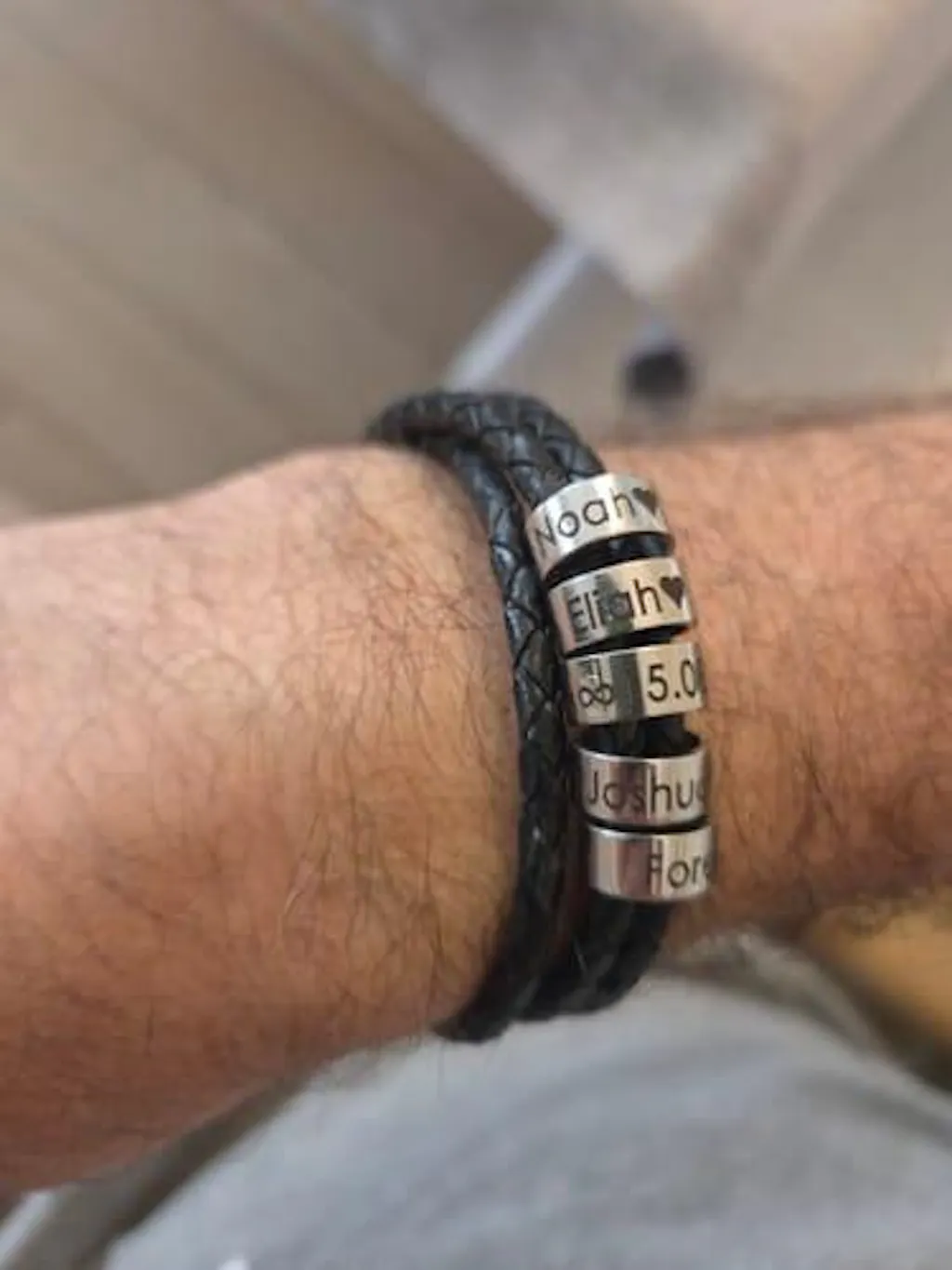 Lederarmband mit gravierten Ringen